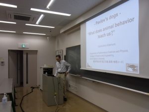 理工学部、建築・環境学部教養学会では2025年10月6日(月)に、理工学部理工学科、数理・物理コース、北村美一郎先生を講師として招聘し、標記タイトルによる所謂「条件反射」、あるいは「古典的条件づけ」をテーマとする英語講演会を開催した。本タイトルによる10回目の講演会であった。