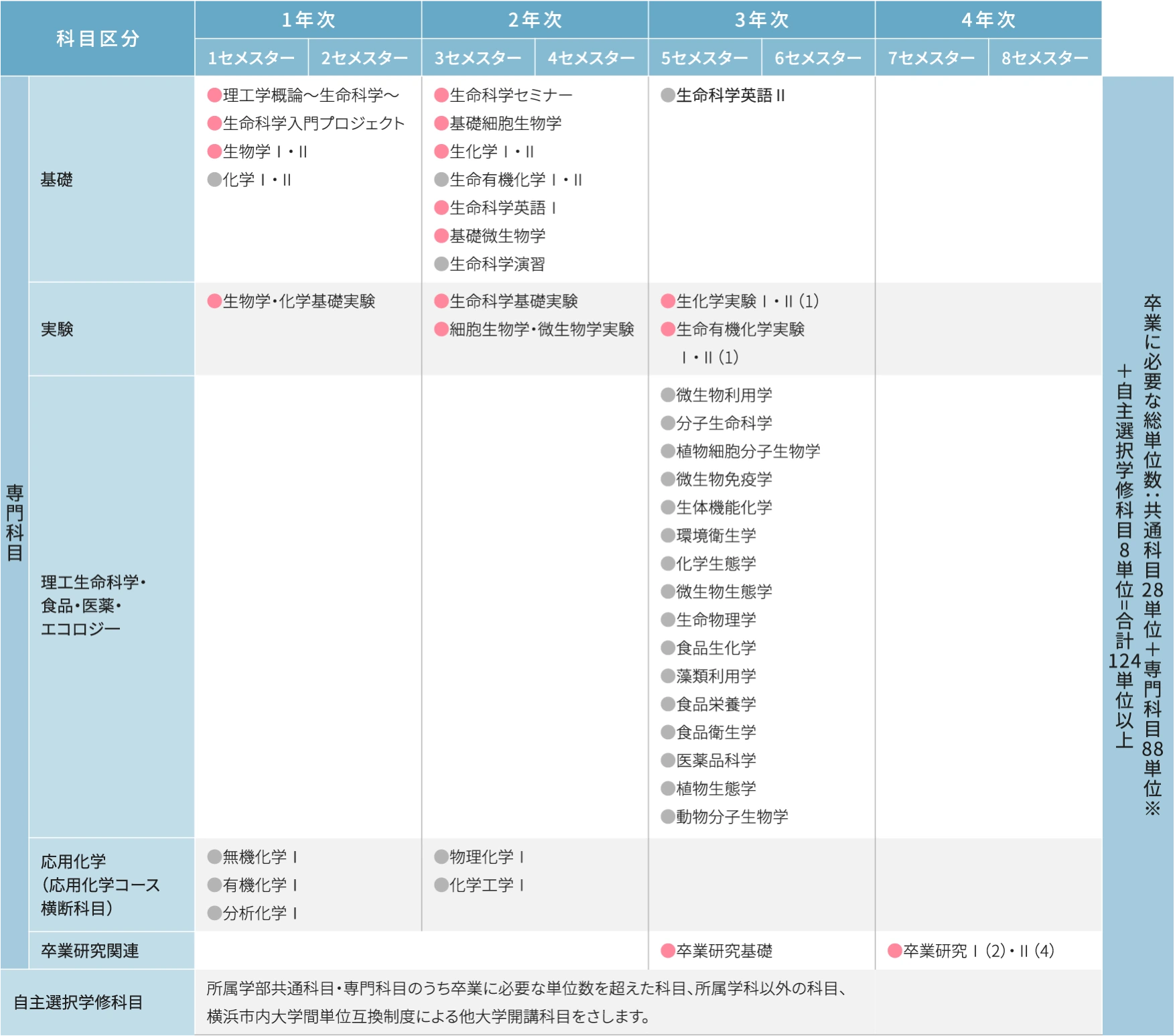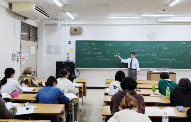 生命科学コースでは、食品、医療、製薬関連メーカーへの就職を希望する学生が多く、これをサポートするための、様々な取り組みが行われています。就職への実践力を身につけるという観点から、実験科目には、企業の品質管理部門などで使用される分析装置を取り入れる工夫をしています。本コースでは、応用化学コースと学習科目の相互乗り入れをしているため、化学に強いバイオ技術者を養成することができ、これが強みの一つとなっています。英語力についても、専門科目に組み込まれた英語学習と、研究室ごとの英語ゼミによって鍛えられます。また、日本バイオ技術教育学会主催の「バイオ技術者認定試験」の受験を奨励することで、実践力の養成を目指しています。一方で、生命科学分野で活躍するためには応用力も必要とされます。生命科学は発展しつつある新しい学問であり、将来、大学で学習した知識が使い物にならなくなる可能性があります。従って、新しい知識や技術に対応できるだけの応用力を身につけておく必要があります。このため、生命科学コースでは、講義、実験科目、卒業研究を通して、少人数教育と学生、教員間の双方向コミュニケーションを重視し、応用力の養成を目指しています。
