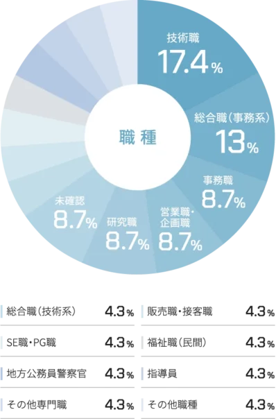 食品関連会社、医療関連会社、製薬会社の品質管理部門、生産部門、研究部門などでの活躍が見込まれます。中学、高校の理科教員や公務員を目指す学生も多く見られます。また、より専門性の強い職種を目指すための、大学院への進学も増加しています。