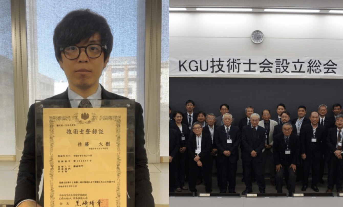 2024年3月に応用化学コースの研究助手の佐藤大樹先生が5大難関国家資格※である技術士(機械部門)に合格しました。