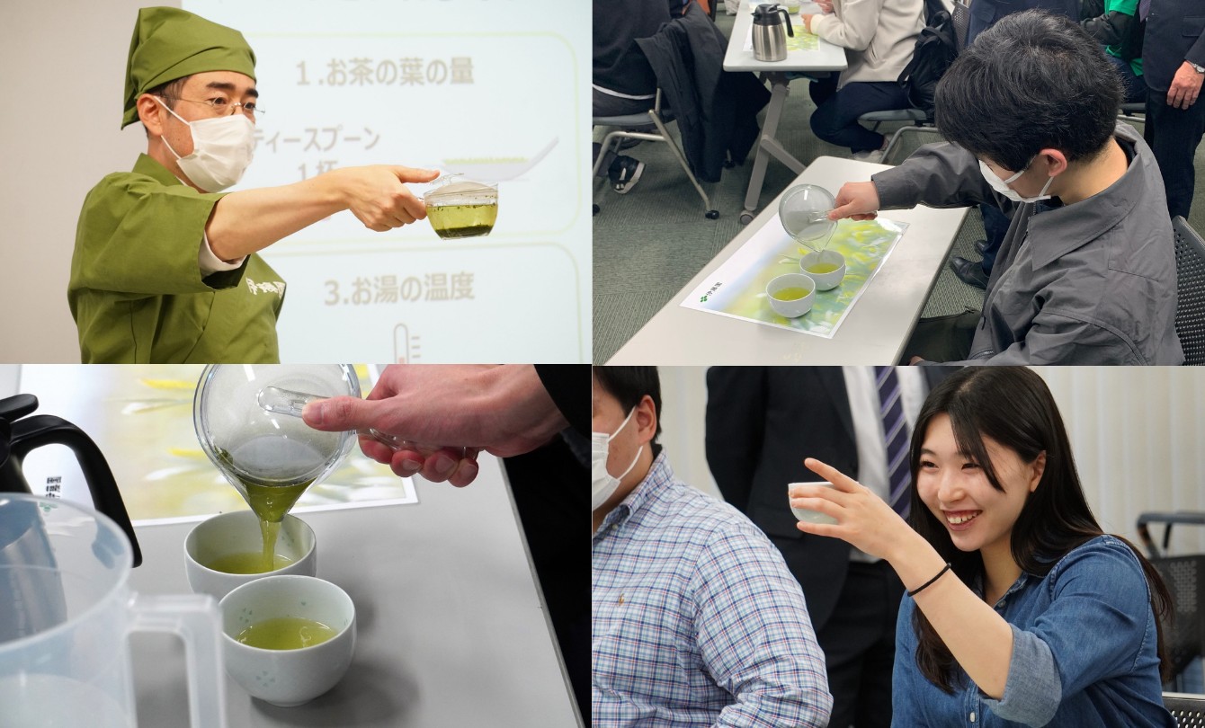 伊藤園がゲストスピーカーを務めた講義(化学技術開発論)も受講したという学生は「淹れたてのお茶は、普段飲んでいるペットボトルのお茶よりも甘みが強く、苦みが少ないと感じた。以前の講義では、お茶のもつ抗酸化作用を活性化させペットボトル飲料の酸化を防ぐ工夫などについて学んだが、そうした工夫の数々は今日淹れたお茶に近い状態を保つためだったことが実感できた」と語りました。