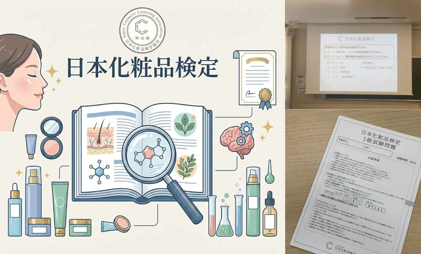 「日本化粧品検定」とは、化粧品の成分、皮膚科学、法律(薬機法)など、美容に関する知識を体系的に習得する検定試験です。文部科学省後援事業としての信頼性も高く、化粧品・美容業界における標準的な知識として広く認知されています。